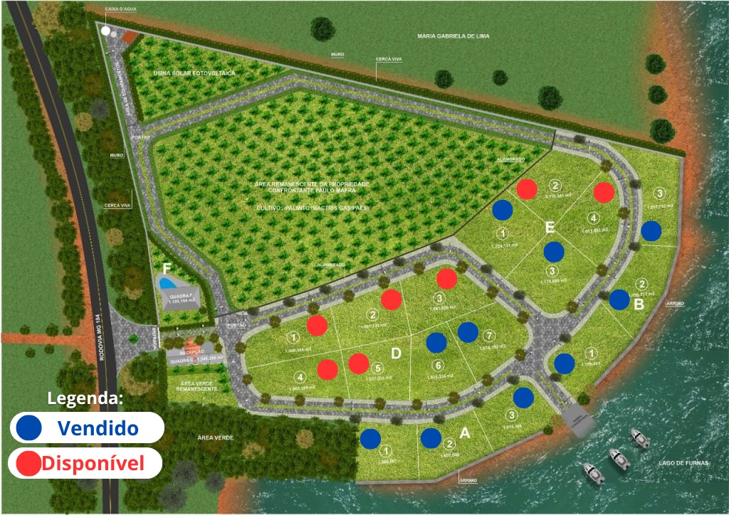 Condomínio Residencial do Lago possui uma orla de 400m de extensão, separada do Lago por um muro de arrimo, regularizado junto à Furnas Centrais Hidroelétricas, e Órgãos Ambientais competentes.